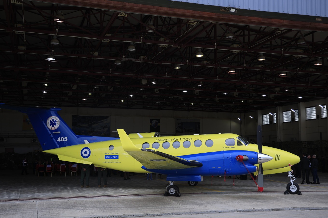 Με στόχο την ενίσχυση της διακομιδής ασθενών και την παροχή υψηλού επιπέδου υπηρεσιών υγείας σε όλη τη χώρα, πραγματοποιήθηκε το απόγευμα της Δευτέρας, στην 112 Πτέρυγα Μάχης στην Ελευσίνα, η τελετή παράδοσης ενός νέου αεροσκάφους Beechcraft King Air 360C στο ΕΚΑΒ.