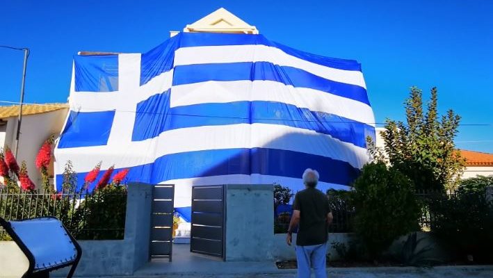 Η εν λόγω σημαία έχει ούτε λίγο ούτε πολύ μέγεθος 140 τετραγωνικά μέτρα, ενώ ο ιδιοκτήτης του σπιτιού είχε καλύψει το σπίτι του με την ίδια σημαία και την 25 Μαρτίου.