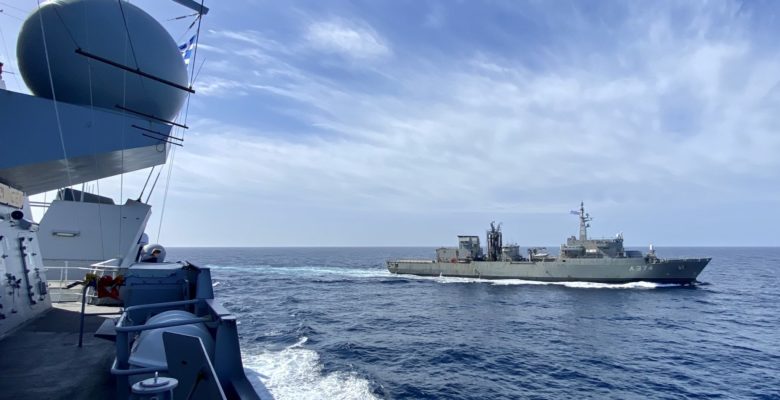 To ΠΓΥ ΠΡΟΜΗΘΕΥΣ (A374) μετά τον εν πλω ανεφοδιασμό της Φ/Γ DE ZEVEN PROVINCIEN (F802) του Ολλανδικού Πολεμικού Ναυτικού την 11ΜΑΡ23.