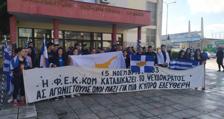 Κατά της παράνομης αυτής ανακήρυξης διαδήλωσαν την Παρασκευή 15 Νοεμβρίου μέλη της Φοιτητικής Ένωσης Κυπρίων Κομοτηνής, της Κυπριακής Ένωσης Φοιτητών και Φίλων Ξάνθης και του Συλλόγου Κυπρίων Ξάνθης πραγματοποιώντας πορεία στους κεντρικούς δρόμους της Κομοτηνής.