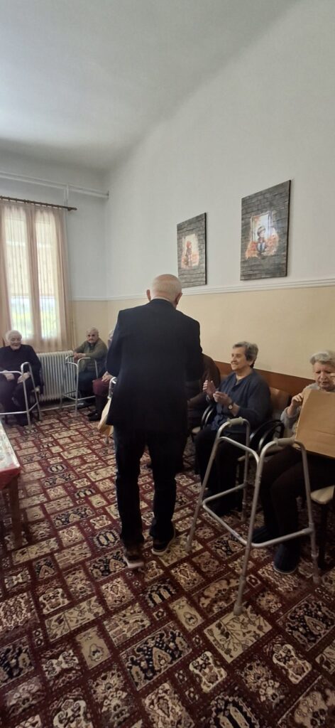 Εκεί, τους υποδέχθηκε θερμά η υπεύθυνη του Γηροκομείου, κυρία Παρασκευή Χαχάμη. Τα μέλη του ΣΑΣΜΥ παρέδωσαν ατομικά δώρα σε όλους τους οικότροφους και το προσωπικό, προσφέροντας χρήσιμα είδη για την καθημερινή τους διαβίωση.