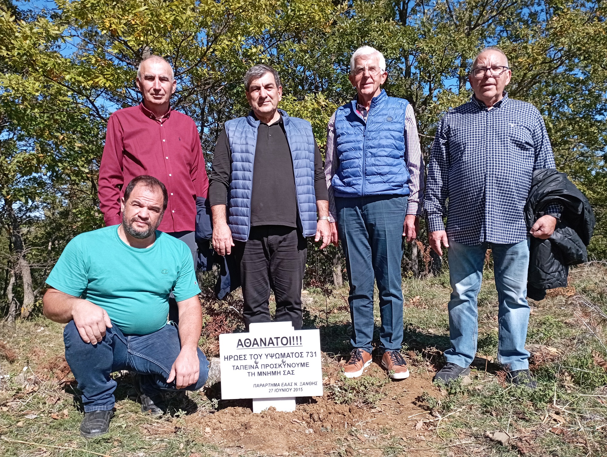 Μετά από διαδρομή μιας και πλέον ώρας στα δύσβατα δρομολόγια γεμάτα πέτρες και νεροφαγώματα τα 8 μικρά λεωφορεία που μισθώσαμε σκαρφάλωσαν πάνω στις απότομες πλαγιές των υψωμάτων και φτάσαμε στο λιτό μνημείο (Εικονοστάσι) των Ελλήνων Ηρώων πάνω στο Ύψωμα 731, το οποίο μέχρι σήμερα έχει καταστραφεί ολοσχερώς τρεις φορές από αγνώστους και ακριβώς δίπλα του επανατοποθετήσαμε τη μαρμάρινη πλάκα «ΑΘΑΝΑΤΟΙ!!!!, ΗΡΩΕΣ ΤΟΥ ΥΨΩΜΑΤΟΣ 731 ΤΑΠΕΙΝΑ ΠΡΟΣΚΥΝΟΥΜΕ ΤΗ ΜΝΗΜΗ ΣΑΣ» καθώς η αρχική που είχε τοποθετηθεί στις 27 Ιουν 2015, είχε ομοίως κατακερματισθεί.