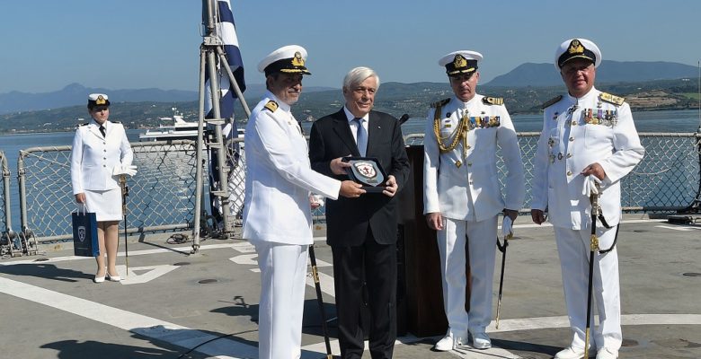 Απευθυνόμενος προς τους αξιωματικούς και τα στελέχη του Πολεμικού Ναυτικού, τόνισε ότι «βρίσκομαι σήμερα εδώ για να αποτίσω φόρο τιμής στις Ένοπλες Δυνάμεις της χώρας, στο Πολεμικό της Ναυτικό, γιατί χάρη σε εσάς η Ελλάδα σήμερα, όχι μόνο φυλάσσει υπερηφάνως τα σύνορά της, αλλά και γιατί επιπλέον επιτελείται αποστολή, η οποία υπερβαίνει τα σύνορά μας, διότι αφορά τα σύνορα της ευρωπαϊκής μας οικογένειας».