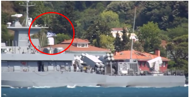 Πάντως δεν ε’ίναι η πρώτη φορά που τα Πολεμικά μας περνούν τα Στενά χωρίς να υποστείλουν τη Σημαία μας …Εξάλλου το ΠΝ δεν έχει υποστείλει ποτέ τη Σημαία