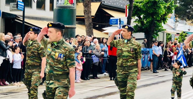 Με βροντερή φωνή τραγουδούν τον Εθνικό μας Ύμνο όλοι οι λεβέντες των στρατιωτικών μονάδων λίγο πριν ξεκινήσουν να παρελαύνουν ενώ “αποκαλύπτουν και τις πολεμικές σημαίες» της 12ης Μεραρχίας.