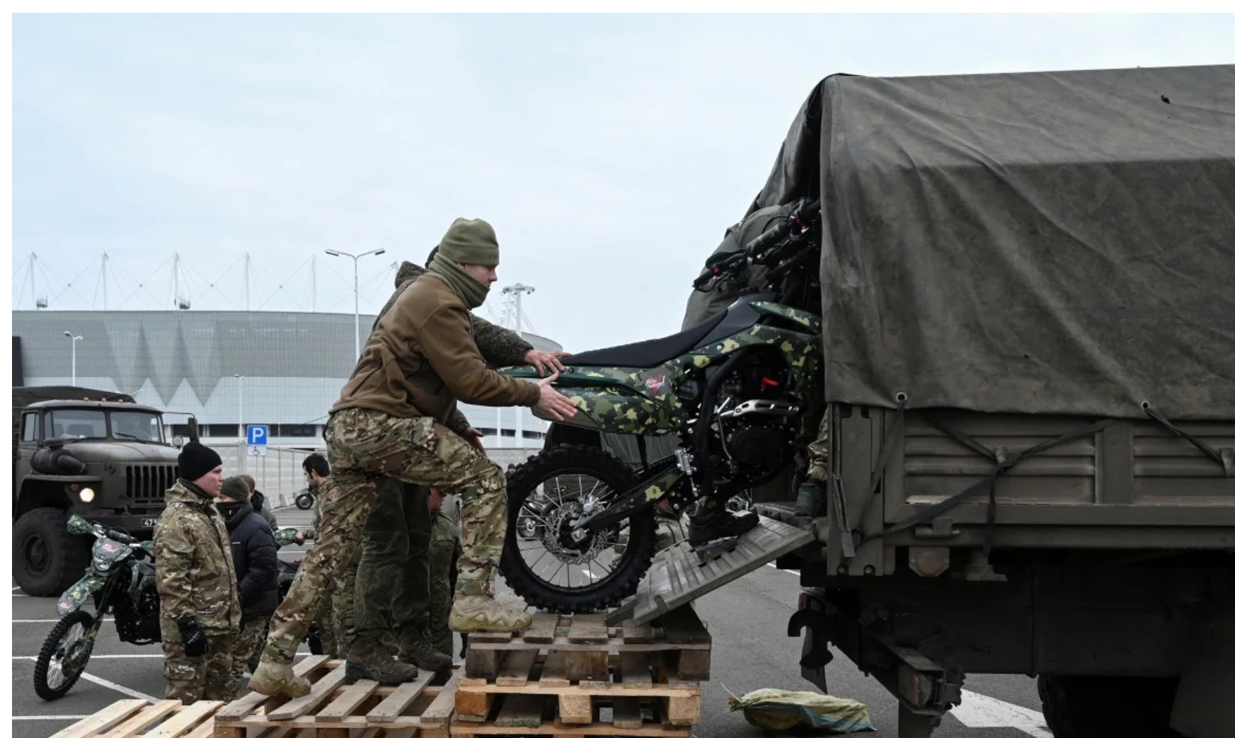 Οι συμμετέχοντες φορτώνουν μοτοσυκλέτες σε ένα φορτηγό κατά τη διάρκεια τελετής παράδοσης στον ρωσικό στρατό στο Ροστόφ-ον-Ντον, Ρωσία, 28 Νοεμβρίου 2024. Sergey Pivovarov/Reuters“>Ο ρωσικός στρατός σχεδιάζει να αυξήσει τη χρήση μικρών ομάδων σε μοτοσυκλέτες και τετράτροχα στην πρώτη γραμμή στην Ουκρανία καθώς σχεδιάζει νέες επιθέσεις, σύμφωνα με τον ουκρανικό στρατό και τους αναλυτές της σύγκρουσης.