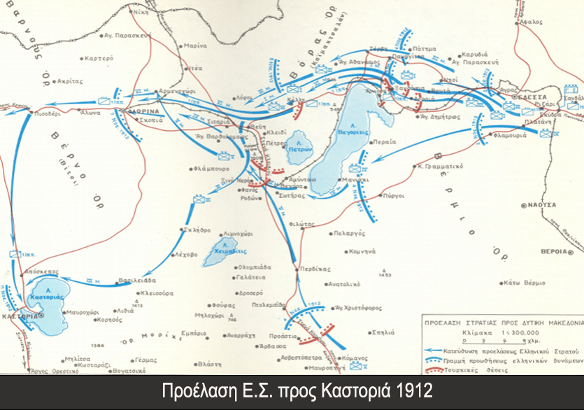 Κατά τη διάρκεια των επιχειρήσεων του ελληνικού Στρατού στον Α΄ Βαλκανικό Πόλεμο στην περιοχή της Δυτικής Μακεδονίας στις 11 Νοεμβρίου 1912 απελευθερώθηκε η Καστοριά. Οι οθωμανικές δυνάμεις υποχωρούσαν συνεχώς και είχαν ήδη συμπτυχθεί στην περιοχή της Κορυτσάς αφήνοντας ένα μεγάλο μέρος της Δυτικής Μακεδονίας ακάλυπτο.