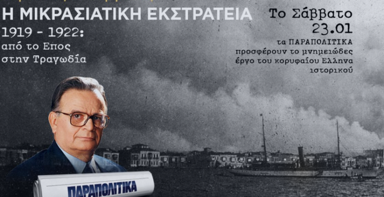 Με αφορμή τα δύο χρόνια από τον θάνατο του σπουδαίου ιστορικού, φιλόλογου και δοκιμιογράφου Σαράντου Ι. Καργάκου, τα Παραπολιτικά σας προσφέρουν από το Σάββατο 23 Ιανουαρίου το μνημειώδες έργο του για την Μικρασιατική Εκστρατεία, σε μια πολυτελή τετράτομη έκδοση, που με νηφάλιο ύφος, διάθεση αντικειμενικότητας και στοχαστική προσέγγιση, καταγράφει με λόγο ευσύνοπτο, λιτό αλλά, όπως πάντα γλαφυρό, τα γεγονότα που οδήγησαν στην τραγωδία της Μικρασιατικής Καταστροφής.