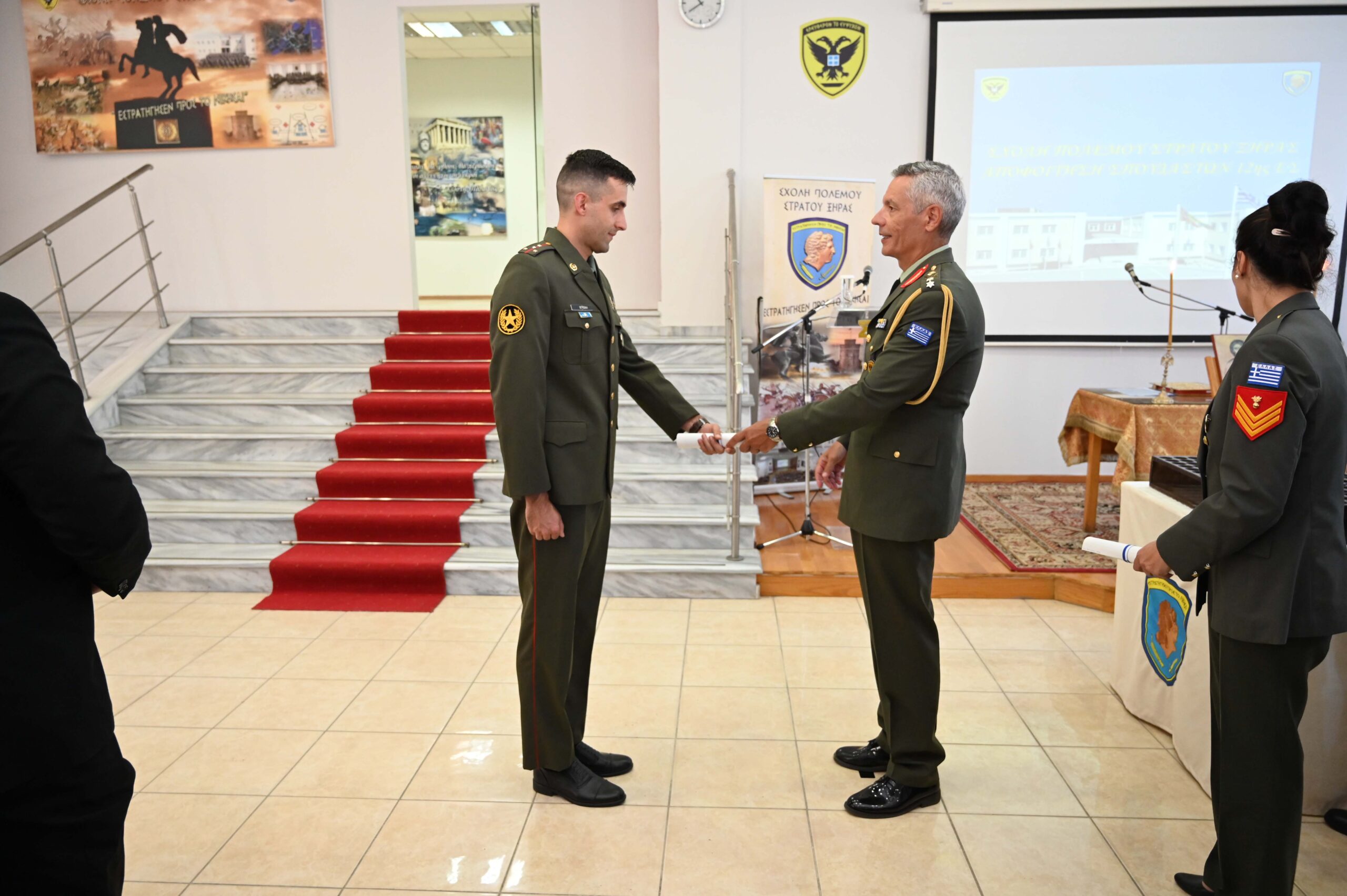 Η τελετή έλαβε χώρα στο Στρατόπεδο «Οπλαρχηγού Δημητρίου Νταλίπη», παρουσία του Υποστράτηγου Αναστάσιου Δημουλά, Διευθυντή της ΓΕΣ/ΔΙΣΕΚΠ και εκπροσώπου του Αρχηγού του Γενικού Επιτελείου Στρατού, Αντιστράτηγου Γεώργιου Κωστίδη, ο οποίος και απένειμε τα πτυχία στους αποφοιτήσαντες Αξιωματικούς.