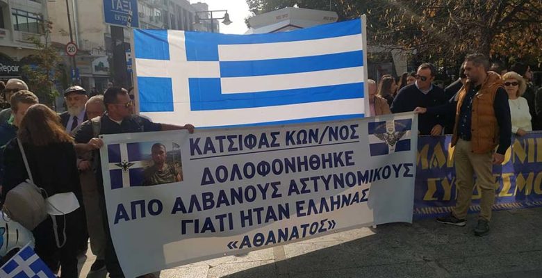 Μία «σιωπηρή» διαμαρτυρία με πανό επέλεξαν Λαρισαίοι, μέλη της πολυδραστήριας Βορειοηπειρώτικης κοινότητας για να διαμαρτυρηθούν για τη δολοφονία του Κωνσταντίνου Κατσίφα, η οποία συνεχίζει να προκαλεί αντιδράσεις.