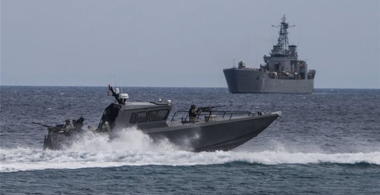 Το Σκάφος Ανορθόδοξου Πολέμου Ελληνικής Κατασκευής “ΩΚΥΑΛΟΣ” (Ρ51) της Διοίκησης Υποβρυχίων Καταστροφών του ΠΝ ,επιχειρεί κατά την Τελική Φάση της Άσκησης “ΠΑΡΜΕΝΙΩΝ 2019 “στην Σαμοθράκη το πρωί την 4 Οκτωβρίου 2019.