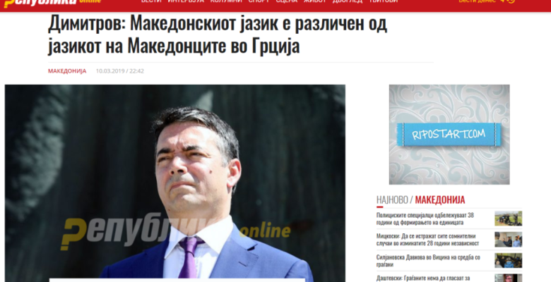 «Η καταγωγή του υπουργού Ντιμιτρόφ είναι από την Αιγαιατική Μακεδονία, όπου εκατοντάδες χιλιάδες άνθρωποι μιλούν την μακεδονική γλώσσα, την οποία η Ελλάδα αρνείται να αναγνωρίσει, όπως αρνείται να αναγνωρίσει και μακεδονική μειονότητα, την οποία η Αθήνα αποκαλεί σλαβική και αρνείται να της εκχωρήσει δικαιώματα», γράφει η εθνικιστική ιστοσελίδα «Republika».