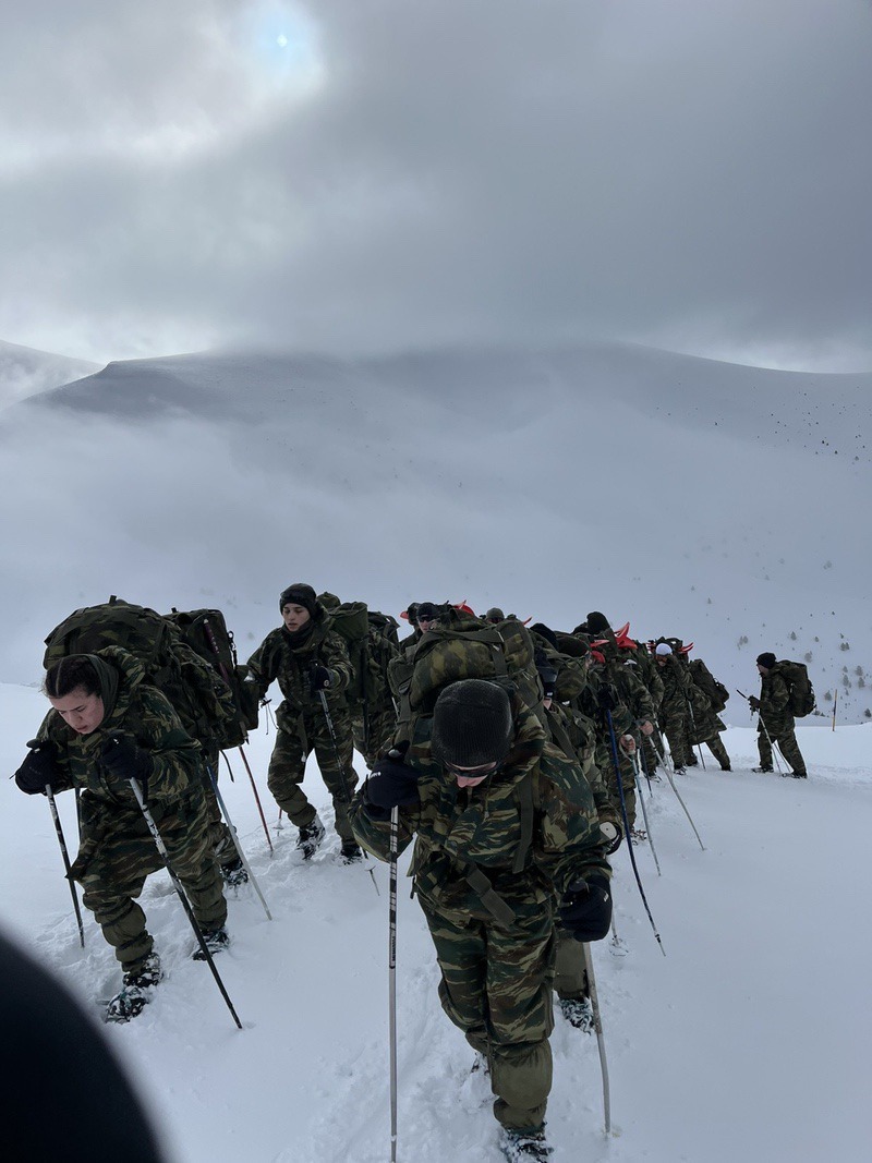Κατά τη διάρκεια της εκπαίδευσης, οι σπουδαστές κλήθηκαν να επιχειρήσουν σε ορεινό και χιονοσκεπές περιβάλλον, αντιμετωπίζοντας πραγματικές συνθήκες ψύχους και περιορισμένης ορατότητας. Το πρόγραμμα περιέλαβε ασκήσεις μικρών κλιμακίων, με έμφαση στη συνεργασία και στον συντονισμό ομάδων μάχης, καθώς και βολές ταχείας αντίδρασης, που απαιτούν άμεση λήψη αποφάσεων υπό πίεση.