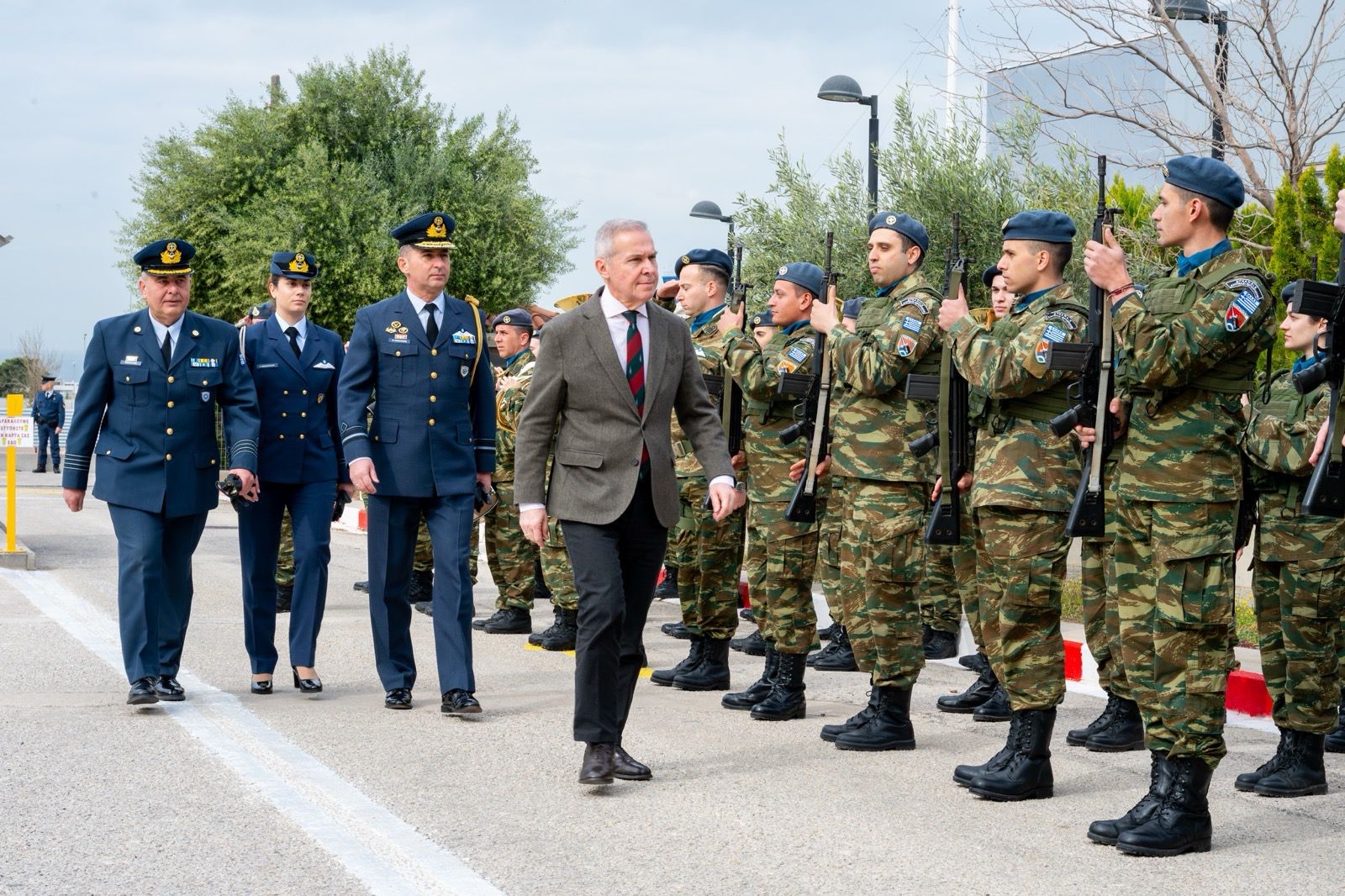 Εκεί τον υποδέχθηκαν ο Επιτελάρχης του Γενικού Επιτελείου Αεροπορίας Υποπτέραρχος (Ι) Ματθαίος Κανουπάκης και ο Διοικητής της Εθνικής Μετεωρολογικής Υπηρεσίας Σμήναρχος (ΜΤ) Ηλίας Πατσιούρας.