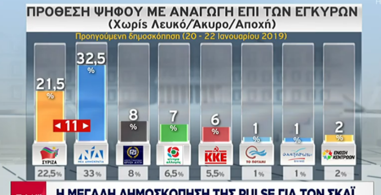 Βάσει αυτών των αποτελεσμάτων η διαφορά της ΝΔ από τον ΣΥΡΙΖΑ αγγίζει το 11%.