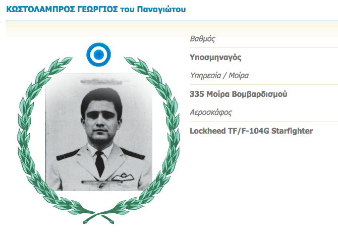 Σκοτώθηκε στις 18 Ιανουαρίου 1968 κατά την εκτέλεση διατεταγμένης πτήσεως, όταν το αεροσκάφος του, F-104G της 335 Μοίρας Κρούσεως, κατέπεσε στην περιοχή του Πεδίου Βολής Μαραθώνα λόγω απώλειας στηρίξεως.