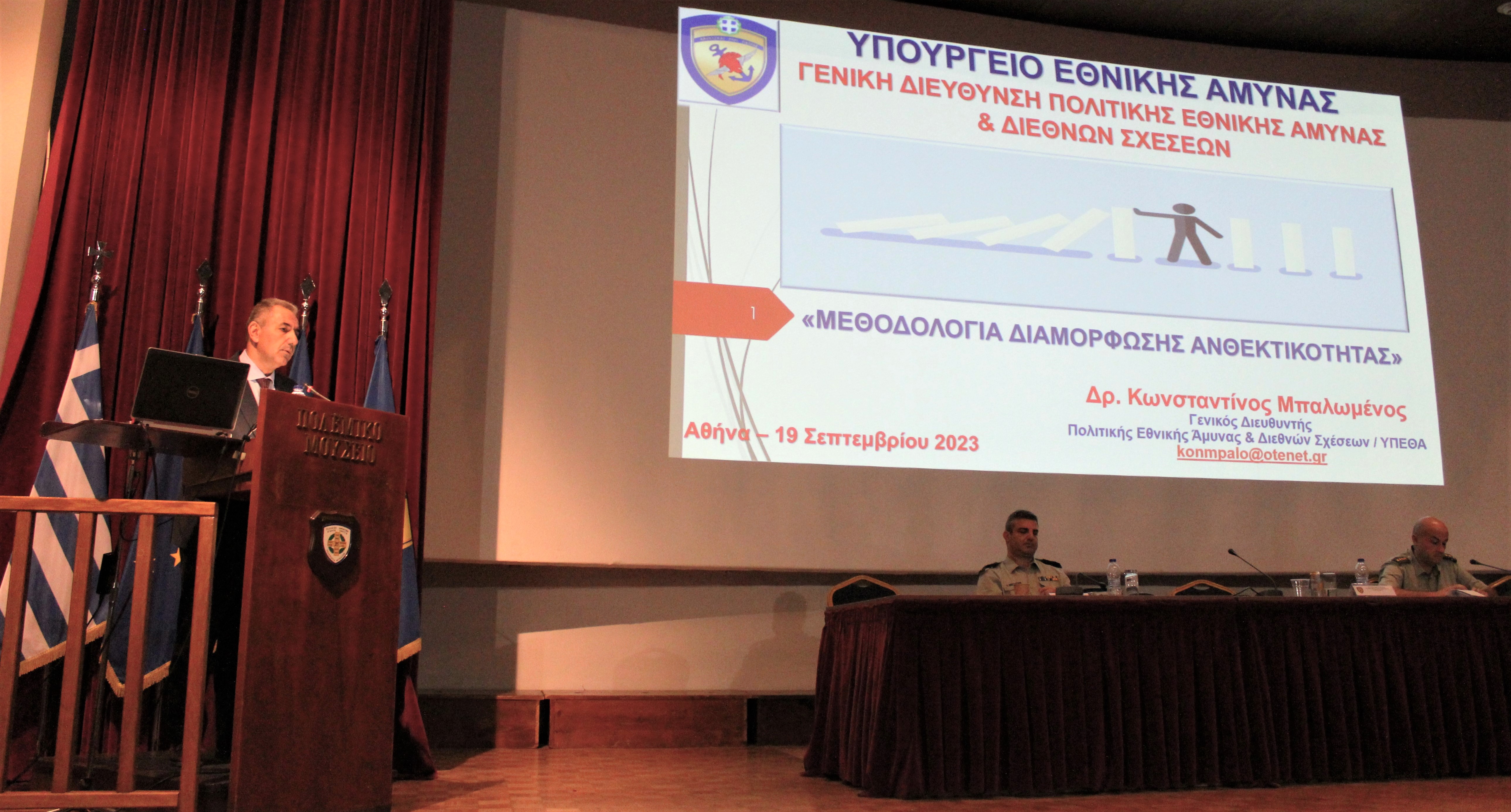 Η Γενική Διεύθυνση Πολιτικής Εθνικής Άμυνας και Διεθνών Σχέσεων (ΓΔΠΕΑΔΣ), του Υπουργείου Εθνικής Άμυνας (ΥΠΕΘΑ), την Τρίτη 19 Σεπτεμβρίου 2023 συγκάλεσε την 2η Διυπουργική Οργανωτική Σύσκεψη για την Εθνική Ανθεκτικότητα, όπου έλαβε χώρα στο αμφιθέατρο του Πολεμικού Μουσείου, με τη συμμετοχή εκπροσώπων (επιπέδου Γενικών Διευθυντών /Διευθυντών), από όλα τα Υπουργεία, τις Αποκεντρωμένες Διοικήσεις και τις Περιφέρειες της χώρας.