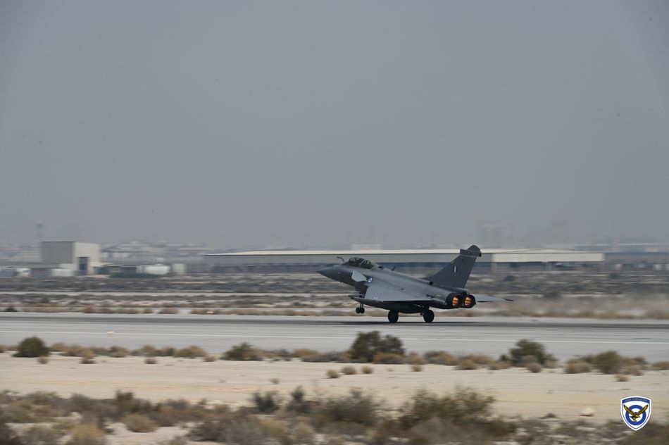 Η ελληνική συμμετοχή πραγματοποιήθηκε με κλιμάκιο τεσσάρων μαχητικών Rafale και το αντίστοιχο ιπτάμενο και τεχνικό προσωπικό της 332 Μοίρας, προερχόμενο από την 114 Πτέρυγα Μάχης. Η μεταφορά του προσωπικού και του υλικού υποστήριξης έγινε με μεταγωγικά αεροσκάφη C-130, ενώ η δύναμη της Πολεμικής Αεροπορίας μεταστάθμευσε στην Αεροπορική Βάση King Abdulaziz, στο Νταχράν της Σαουδικής Αραβίας.