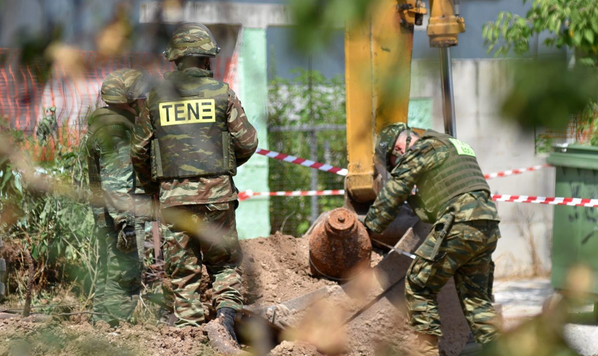 Το σημείο έχει αποκλειστεί ενώ αναμένεται κλιμάκιο πυροτεχνουργών του Στρατού για να απομακρύνει την οβίδα.