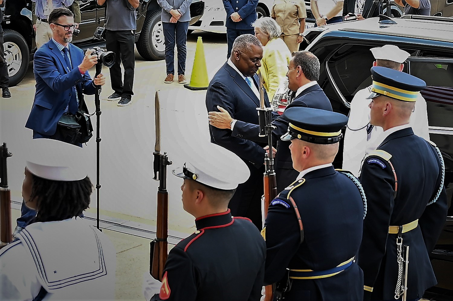 ΛΟΪΝΤ ΩΣΤΙΝ: «Κύριε Υπουργέ, είναι ιδιαίτερη η χαρά μου που σας υποδέχομαι στο Πεντάγωνο, χαίρομαι πολύ που σας ξαναβλέπω μετά τη Σύνοδο του ΝΑΤΟ στη Μαδρίτη, η οποία ήταν μια εξαιρετική και ιστορική σύνοδος.