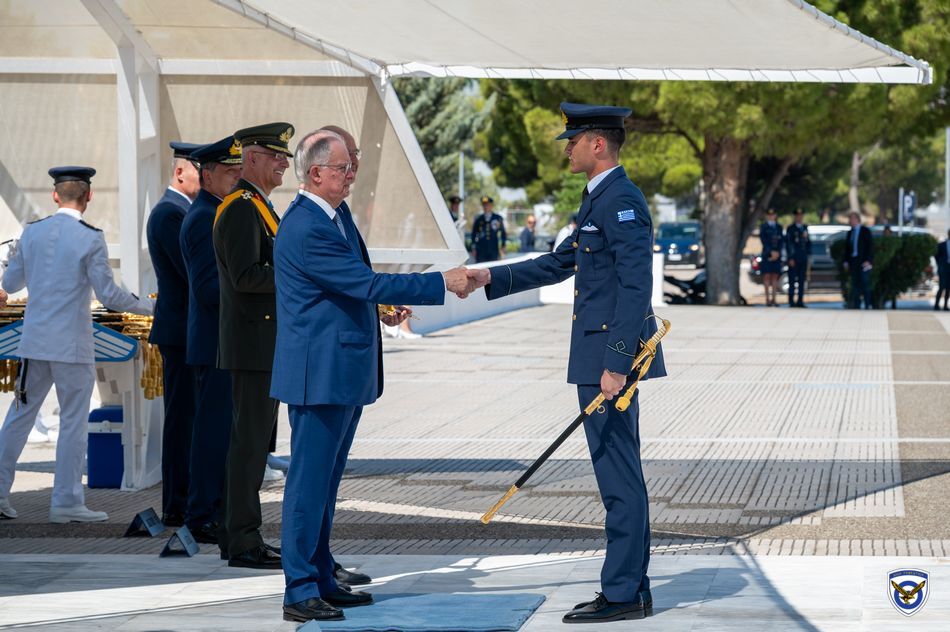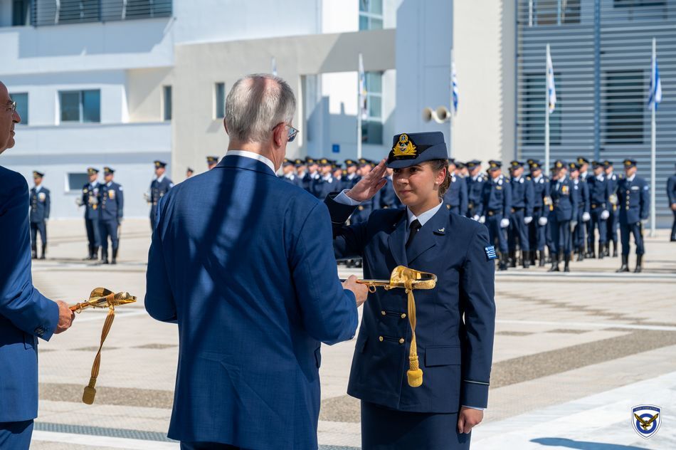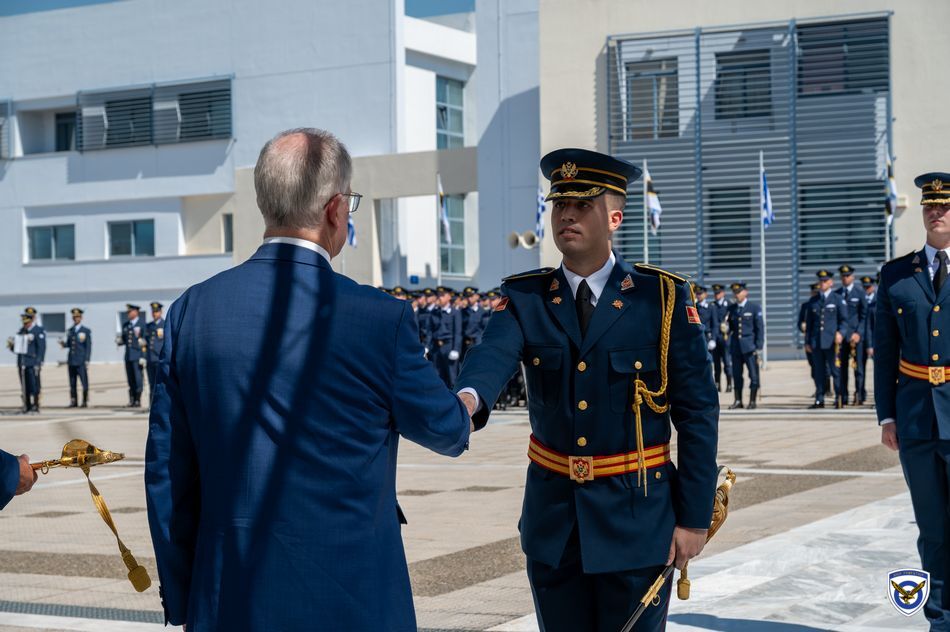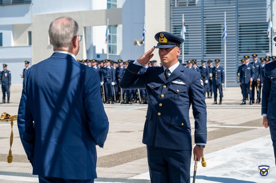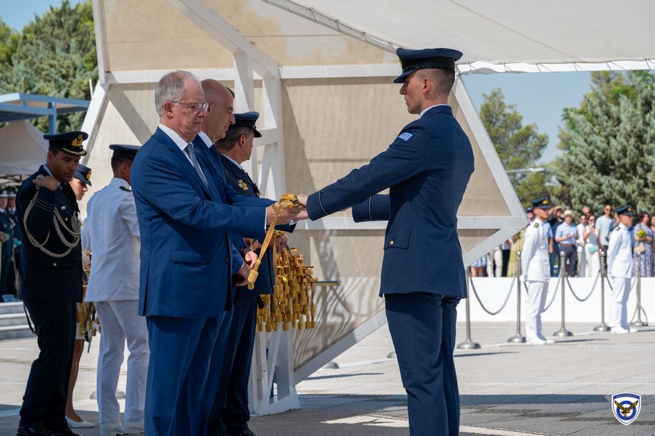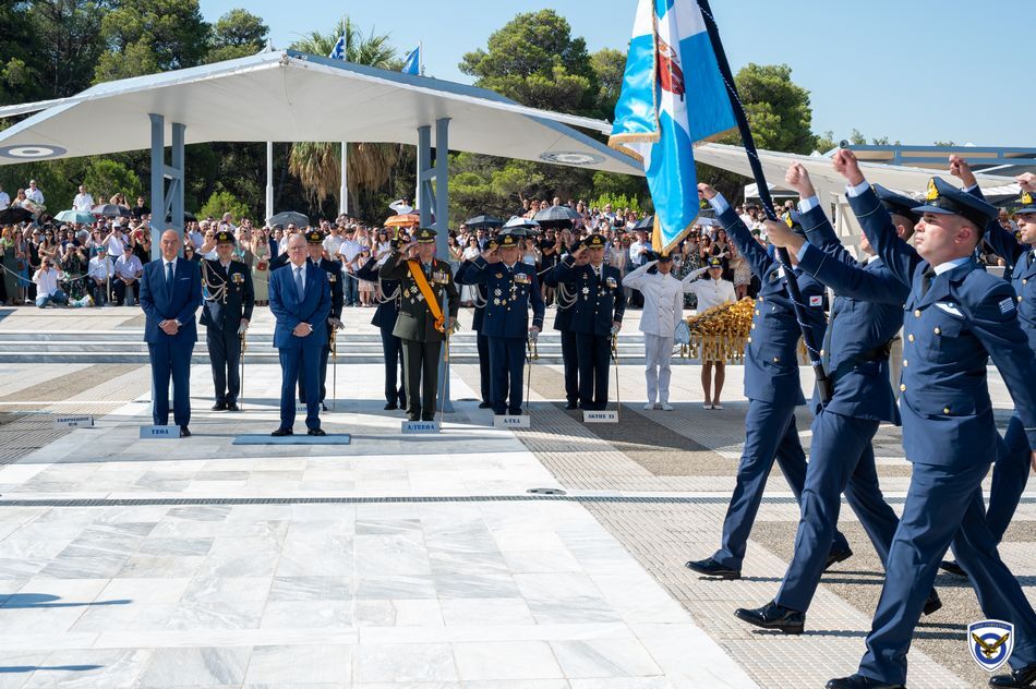 O οποίος επέδωσε και τα ξίφη στους ορκισθέντες Ανθυποσμηναγούς της Πολεμικής Αεροπορίας. Δοξολογία τέλεσε ο Μητροπολίτης Ιλίου, Αχαρνών και Πετρουπόλεως κ.κ. Αθηναγόρας.