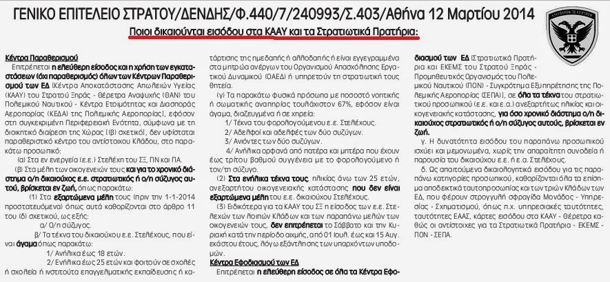 Αν και σύμφωνα με Διαταγή του ΓΕΣ καθορίζονται επακριβώς οι δικαιούχοι που εισέρχονται ,αλλά η είσοδος απο άλλες διόδους δεν ελέγχεται με αποτέλεσμα να εντοπίσουμε ακόμη και και “συνοδούς θυγατέρων ”