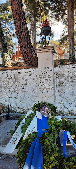 Στη συνεχεία κλήρος και λαός εν πομπή πήγαν στο Μνημείο Πεσόντων όπου τελέσθηκε τρισάγιο και πραγματοποιήθηκε κατάθεση στεφάνων από την Ένωση Αποστράτων Αξιωματικών Στρατού Ιωαννίνων (Ε.Α.Α.Σ.) την Ένωση Απόστρατων Χωροφυλακής & Σωμάτων Ασφαλείας Ιωαννίνων, τους Έφεδρους Αξιωματικούς Ιωαννίνων, την Εθνική Αντίσταση Π.Α.Ο. Μακεδονίας, την ΝΟΔΕ Ιωαννίνων, το πατριωτικό δημοκρατικό κίνημα «ΝΙΚΗ» και το «ΛΑΟΣ»..