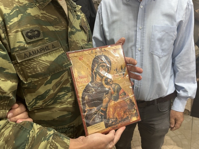 Ο Πρόεδρος της ΕΑΑΣ Τρικάλων & με σύσσωμο το Δ.Σ παρέδωσαν μια εικόνα στον Αξιωματικό Υπηρεσίας που συγκινήθηκε μιας και προερχόταν ο ίδιος απο τη ΣΜΥ που το παράρτημα διαθέτει αρκετά στελέχη απο την Τιμημένη Σχολή από όπου αποφοιτήσει Στρατηγοί και Ηγέτες !
