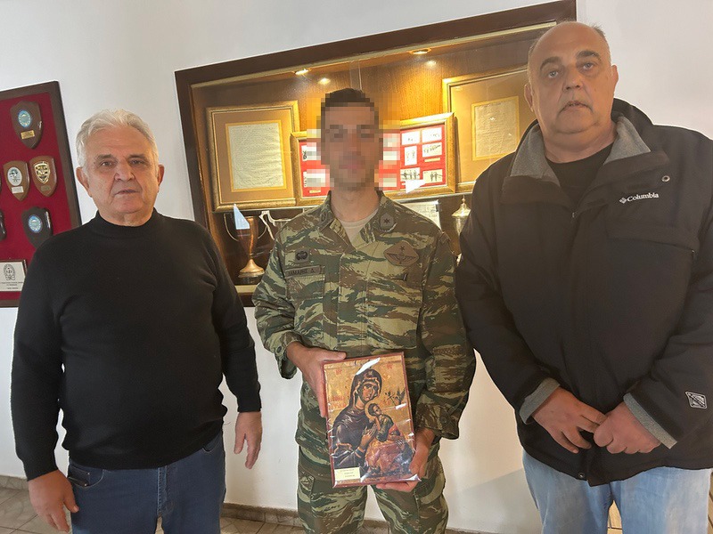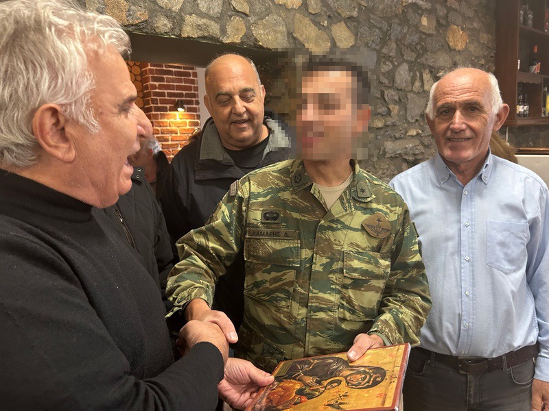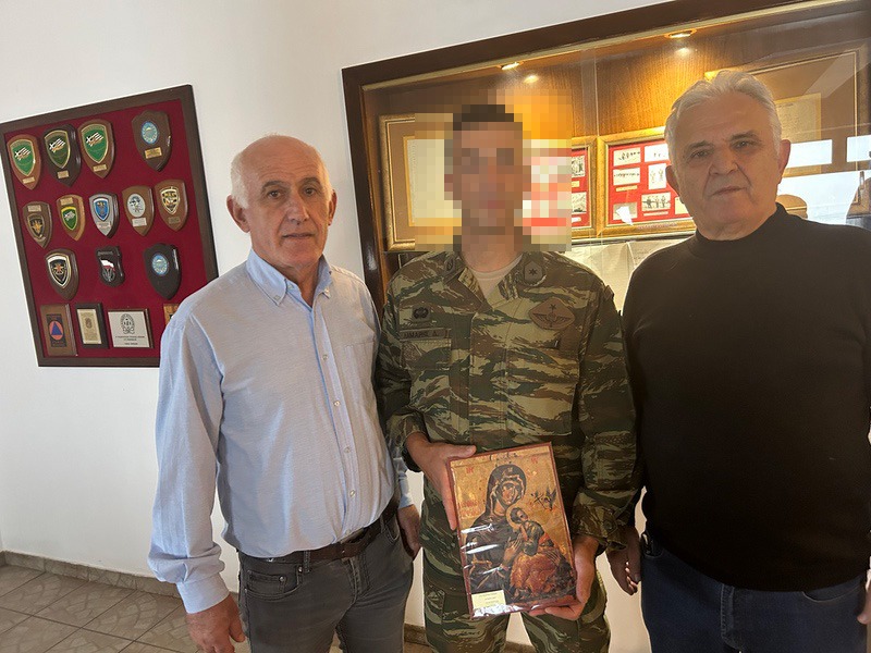 Ο Πρόεδρος της ΕΑΑΣ Τρικάλων & με σύσσωμο το Δ.Σ παρέδωσαν μια εικόνα στον Αξιωματικό Υπηρεσίας που συγκινήθηκε μιας και προερχόταν ο ίδιος απο τη ΣΜΥ που το παράρτημα διαθέτει αρκετά στελέχη απο την Τιμημένη Σχολή από όπου αποφοιτήσει Στρατηγοί και Ηγέτες !