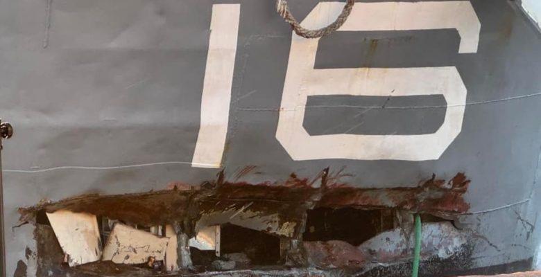 Μεγάλες ήταν οι προσπάθειες του πολεμικού ναυτικού για να κρατηθεί το πλοίο στη θέση του …ενώ οι εικόνες που κυκλοφορούν στο διαδίκτυο δείχνουν να έχει τρύπα στα Ύφαλα του Πολεμικού Σκάφους (Μουσείο)