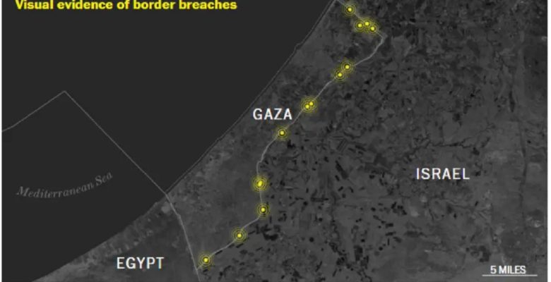 Όπως αποκαλύπτει η δημοσιογραφική έρευνα του αμερικανικού μέσου, βρέθηκε υλικό που δείχνει 14 ξεχωριστές παραβιάσεις του φράγματος. Συγκρίνοντας το υλικό με χάρτες, δορυφορικές εικόνες και άλλα δεδομένα, οι δημοσιογράφοι εντόπισαν πού έγιναν οι παραβιάσεις, από το πέρασμα Erez στο βορρά έως το Kerem Shalom στο νότο. Το Ισραήλ δήλωσε ότι υπήρξαν συνολικά περίπου 30 παραβιάσεις.