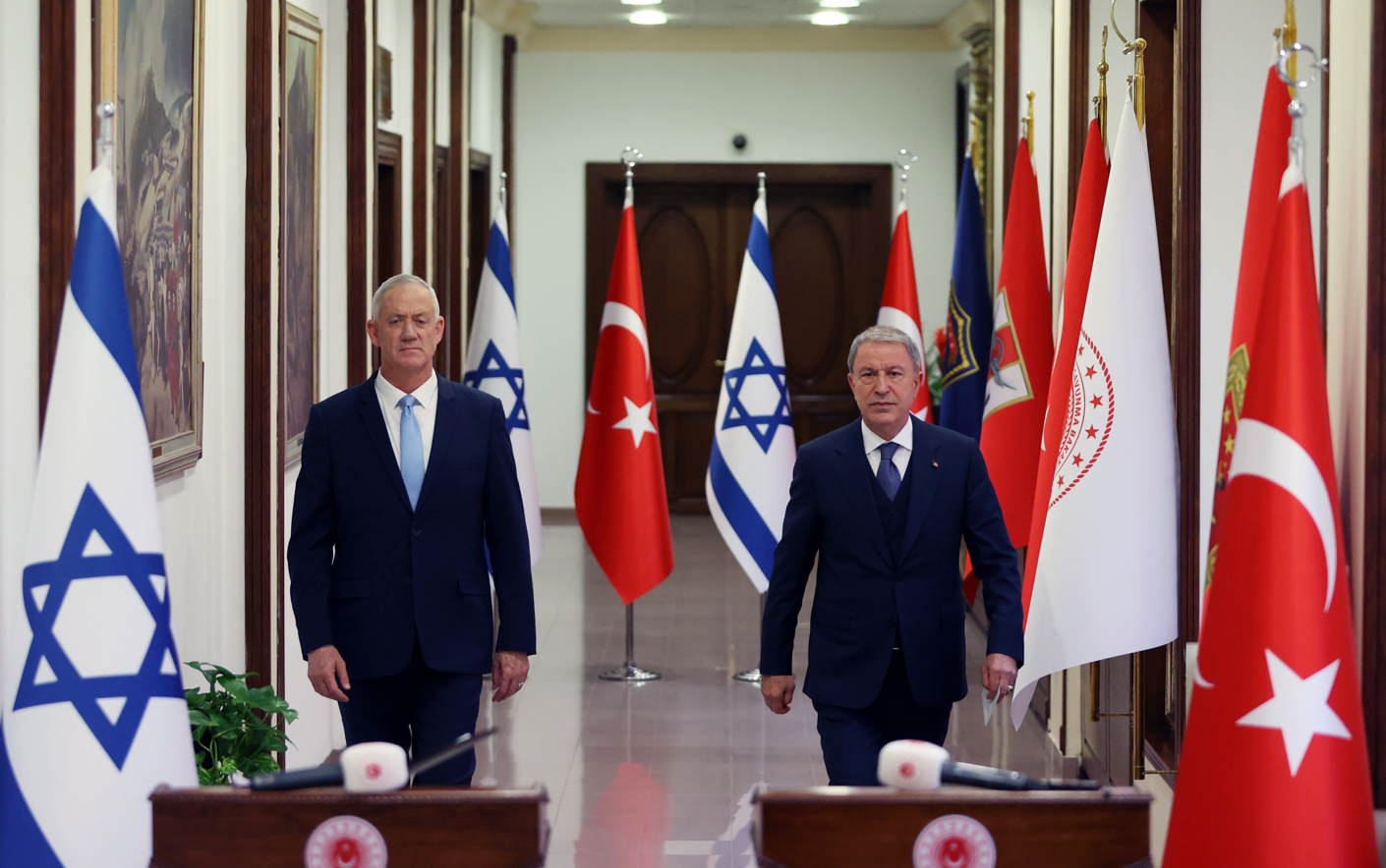 Ο Ισραηλινός υπουργός Άμυνας Μπένι Γκαντζ δήλωσε σήμερα (27/10) ότι ζήτησε από το επιτελείο του να ξεκινήσει τη διαδικασία επανέναρξης των εργασιακών σχέσεων με την Τουρκία μετά τη συνάντηση που είχε με τον Τούρκο ομόλογό του στην Άγκυρα, Χουλουσί Ακάρ, στην πρώτη επίσκεψη μετά από πάνω από μια δεκαετία.