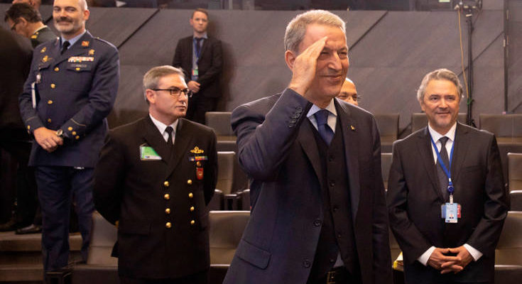 Με ύφος νικητή και χαμόγελο μέχρι τα αυτιά Ο ΥΠΑΜ της Τουρκίας Χουλουσί Ακάρ μπήκε στη σύνοδο των υπουργών Άμυνας του ΝΑΤΟ που διεξάγεται στις Βρυξέλλες, ενώ κατά την είσοδό του χαιρέτισε Στρατιωτικά